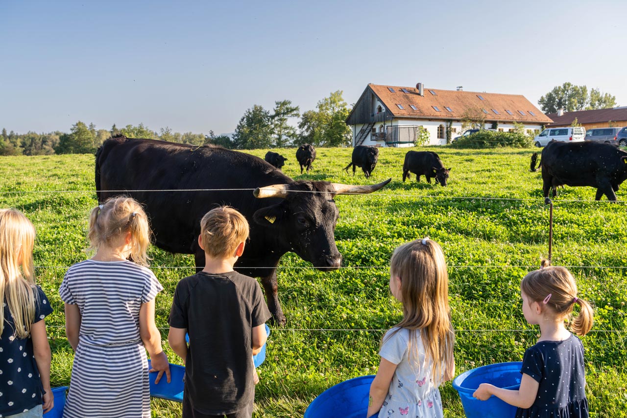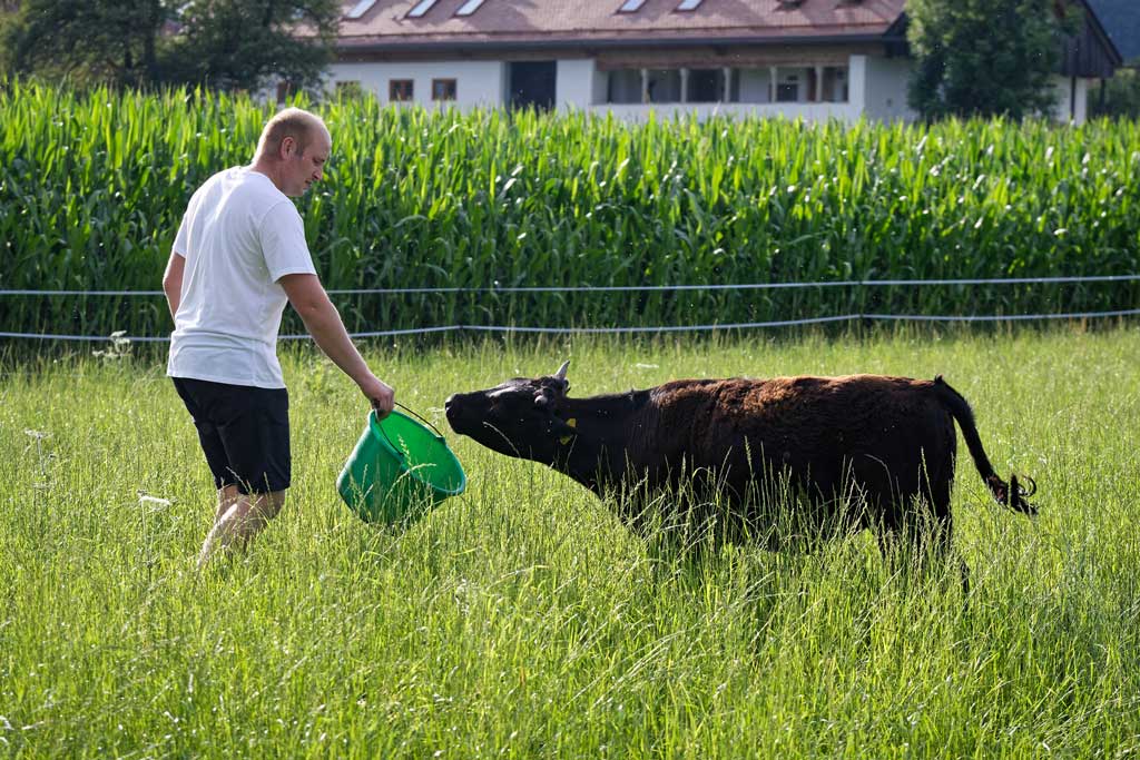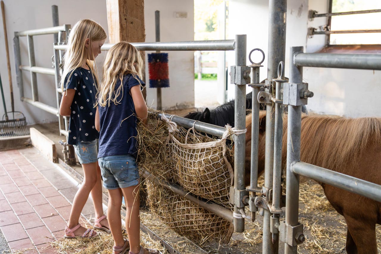 Die Tiere im Stall müssen regelmässig gefüttert werden. Wer Lust hat, darf dem Bauern bei seiner täglichen Arbeit im Stall helfen und je nach Jahreszeit und Vegetation bei der Feldarbeit mit dem Traktor mitfahren.
