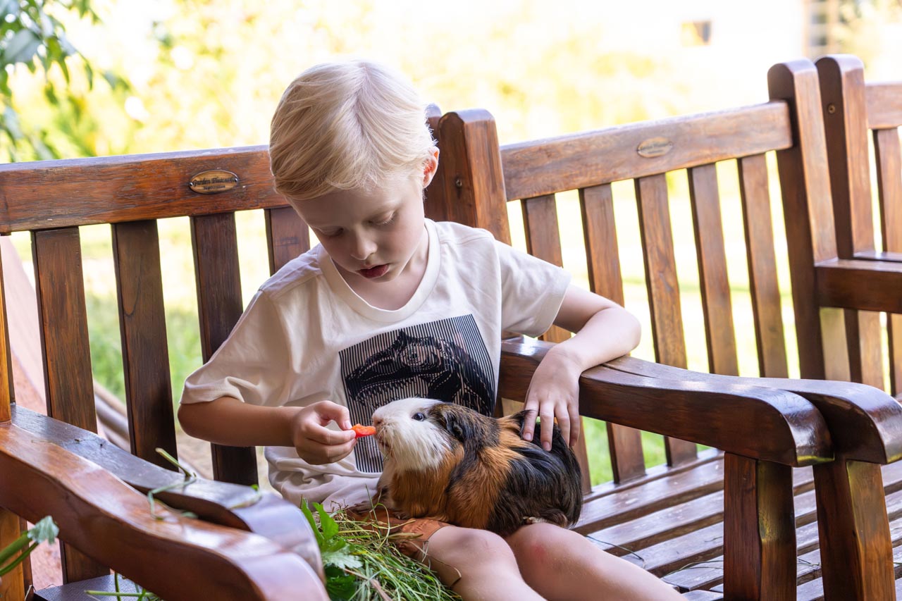 Ein Hagerhof-Highlight für unsere kleinen Gäste ist die Tierfütterung. Dabei lernen sie nicht nur viel über die Tiere, sondern auch Verantwortung und den respektvollen Umgang mit der Natur.